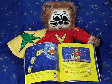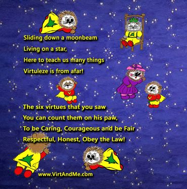 Virtuleze, (vur-choo-leze), a loveable Superhero from a star has come to Earth on a mission to teach the children the significance of “Thinking With Their Heart” and the importance of The Guide to Goodness: Be Caring, Courageous, and be Fair, Respectful, Honest, Obey the Law