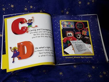 His name Virtuleze comes from the word virtue and means Good Heart. Virtuleze and his Cosmic friends not only capture children’s imaginations but help empower children to live with virtues and values. In “Virtuleze and Thinking With Your Heart with the Alphabet Rap and Rhyme” they take each and every letter of the Alphabet and turn it into a fun rhyme and positive phrase that promotes Good Character.